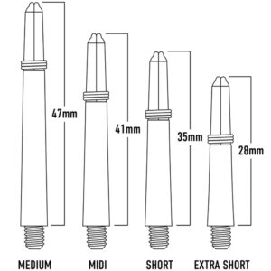 Set de 3 Vástagos Winmau Carbon X Compuesto de Carbono Extra Corto de 27 mm Negros Con Aro Plateado